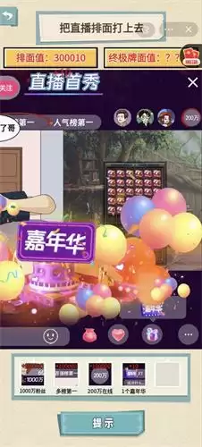 就挺秃然的直播首秀这个关卡应该怎么通关呢?这个关卡中玩家是需要找到所有的可以增加粉丝的道具,其中包括不限于嘉年华以及隐藏人数等等,感兴趣的小伙伴可以来看看小编的通关攻略吧!
