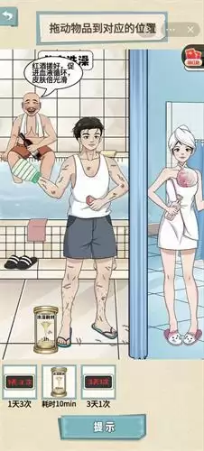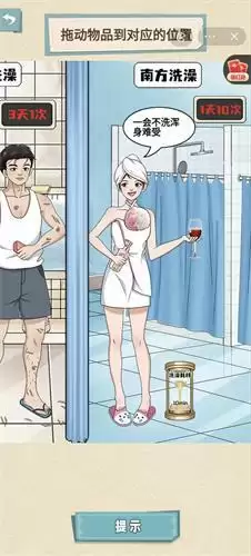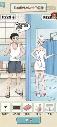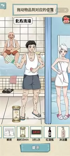 就挺秃然的南北澡堂这个关卡应该怎么通关呢?这个关卡需要玩家将对应的背景图放到两个角色的背后,主要是南北洗澡的不同点,找到就可以通过这个关卡了,下面感兴趣的小伙伴可以和小编一起来看看吧!