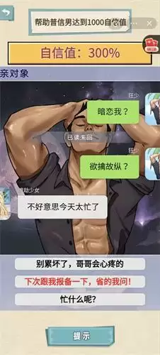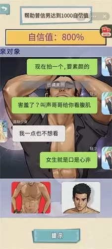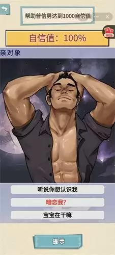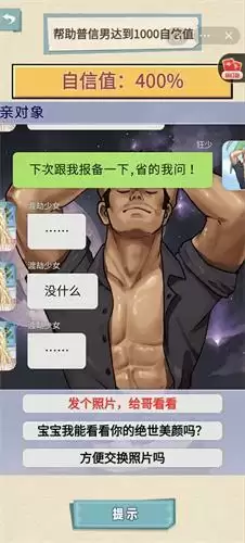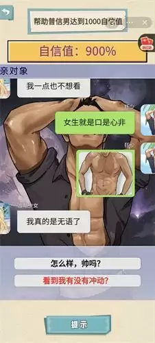 就挺秃然的普信男这个关卡应该怎么过呢?这个还是比较好过的,玩家需要帮助图中的男生自信度到达1000就可以完成这个关卡了,所有的选择都围绕着自行来选择就可以通关,不知道怎么选择的小伙伴可以来看看小编的详细攻略吧!