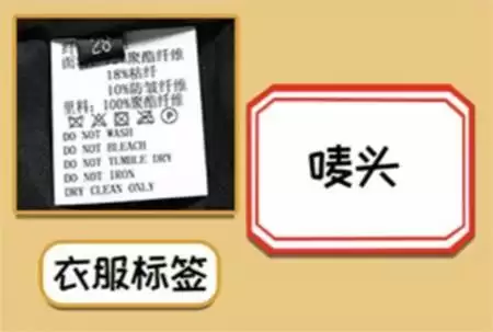 3、衣服标签。