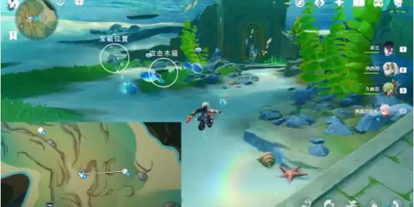 8、传送塞洛海原东北方向水下锚点,往地图的东北方向游,直接获得珍贵宝箱;前面解谜涉及的7个悠悠海獭都出现在这里。
