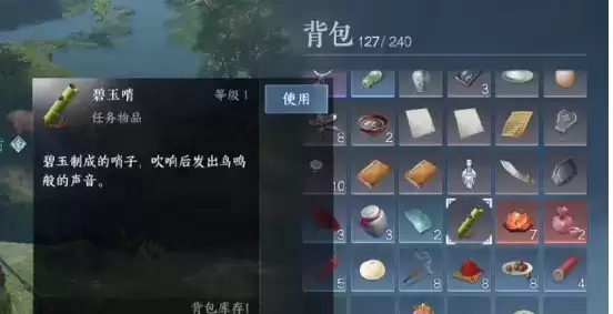 哨子使用方式:打开背包,点开【任务】,里面有个竹子做的哨子,直接在背包里点使用(或者直接点任务栏可以使用)。
