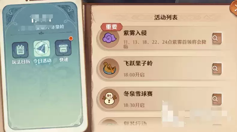 第二个功能则是今日活动,通过点击它你可以快速获悉今日开放了哪些活动,之后便可根据这些活动来安排今天的游玩路线。