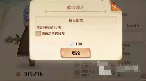 玩家们如果在游戏中想要修改昵称的话,首先登录游戏后点击头像,在昵称旁边有一个羽毛笔的图案,玩家们点击图案后就会提示让玩家们修改了,只要输入新昵称后,在花费100个光珀就可以进行改名了,玩家们还可以选择修改后一键告诉好友。