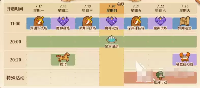 而且家园玩法中还有很多特别的加工建筑物等着玩家们去解锁,同时了解了家园玩法后,玩家们还可以在游戏中体验一些限时时间才会开启的趣味玩法,比如说是赛马,或者机蟹拉力赛,以及一些特殊的活动【复苏心动】,这些限时玩法都是在特定的时间内才会开启的,每日还有今日活动列表等着玩家们去挑战!