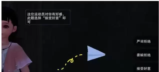 5、这位运动员对你有好感,此题选择“接受好意”即可。【接受好意】