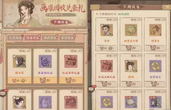 3、绘卷商店每期可以兑换不同的道具!请城主们敬请期待~