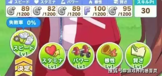 1、游戏关键就是角色养成,分为五种属性,分别是速度、体能、力量、毅力、智力。