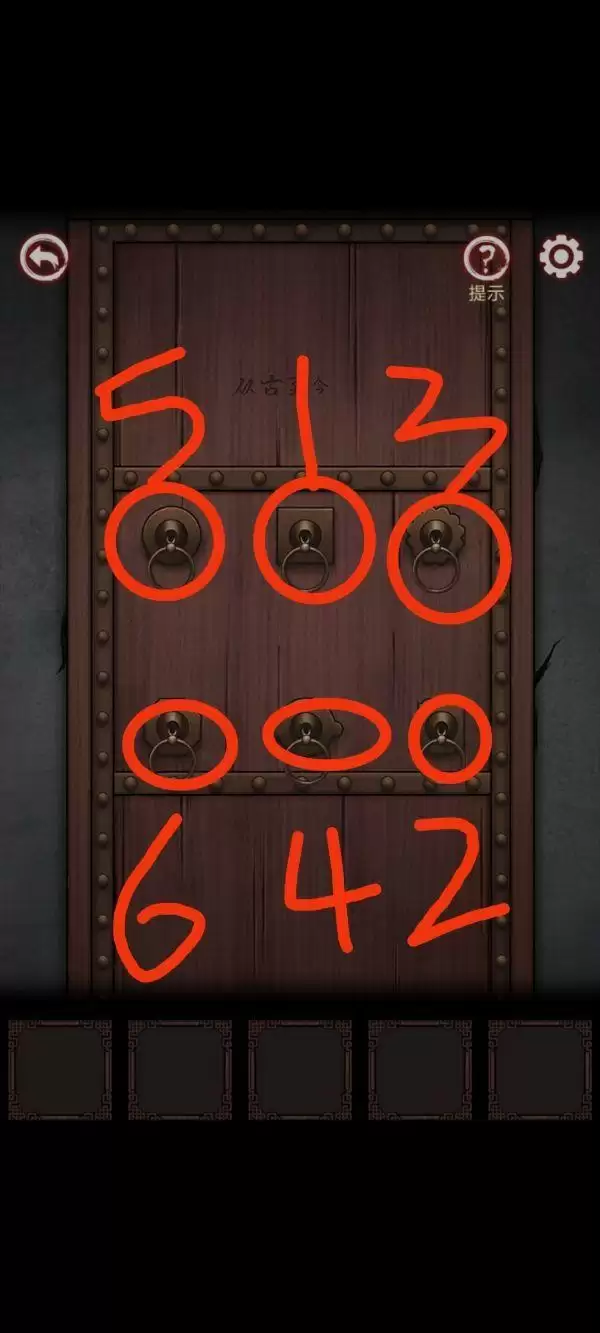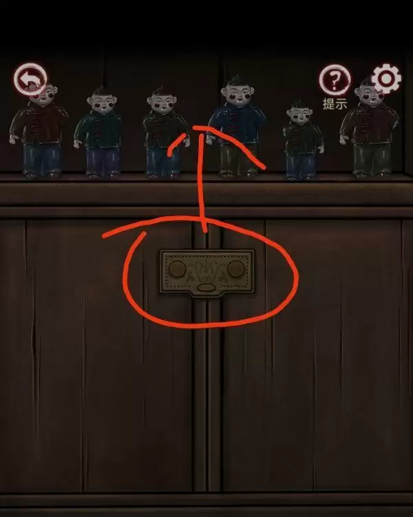 2、看椅子里面影子形状和上面标签汉,唐,宋,元,明,清,门上写了从古到今顺序,拉门上拉环。