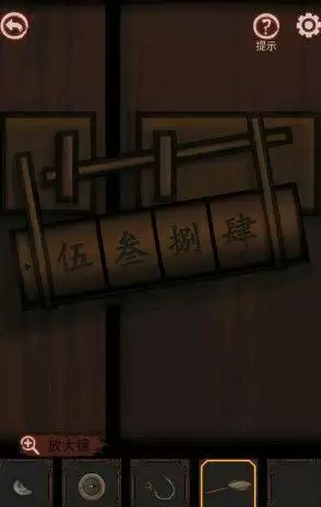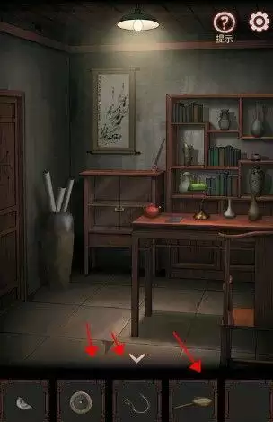 7、拿到钩子,放大镜等,然后每个房间用指南针,得到线索,回到书房,看到那个柜子,五三八四,得到绳子和手臂,钩子绳子组合绳钩。