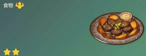传统的枫丹菜肴。血肠的油脂感被香甜的苹果完美中和,散发出惹人迷恋的焦香,让人忍不住两眼发光连连赞叹。