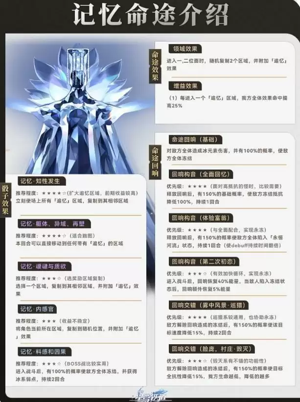 命途玩法:记忆命途能开出很多追忆区域,增加的效果命中也可以为记忆本身的祝福服务,此外还有移动骰子能快速移动。建议前期可重投增加追忆区域(留一次给最后追进度即可),复制区域的能力则建议给奖励区域。