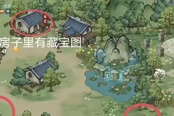 1、在图中的左上角房子里有藏宝图。