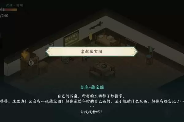 2、玩家进入房间拿起藏宝图即可。