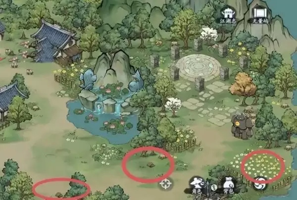 1、图中的上角部分的芦苇,怪物旁和棋山门口的小花。