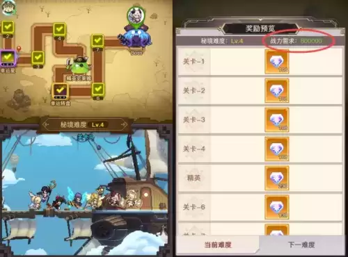 2、进入活动主界面,点击右下方奖励按钮。就能详细的看到对应的难度和关卡所对应的奖励,以及相应难度的战力需求。