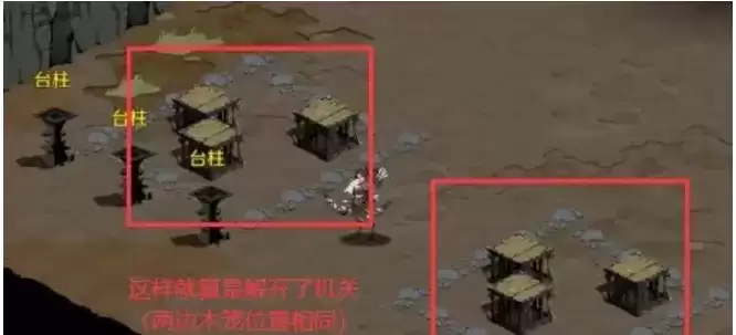 3、进入山洞后,完成木笼机关;(每个木笼机关都有一个固定区和一个操纵区