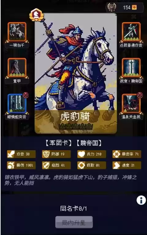 5.纯骑队的强度在于龙骑虎豹都可以吃到骑政策的加成,而虎豹骑是团队大核心辅助,全队都可以增加攻击次数,是一张非常万能的辅助卡,基本上什么队都能塞。