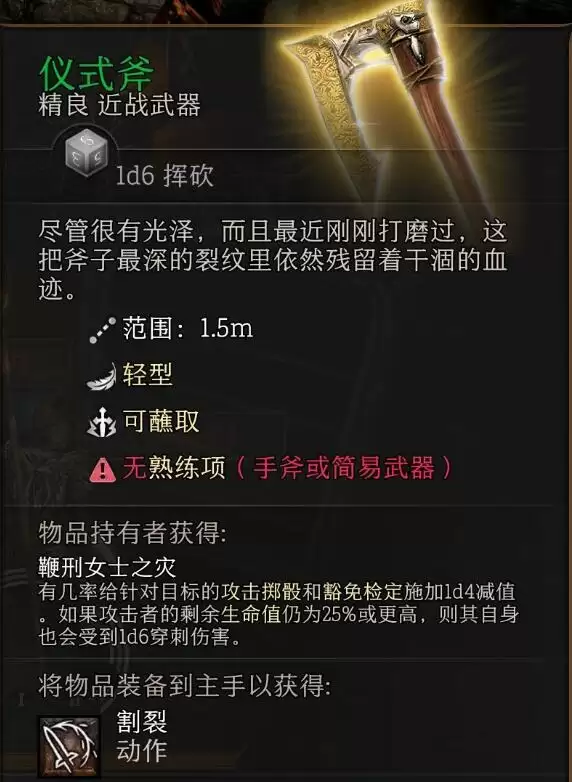 2、正确的仪式为:仪式战斧、仪式长剑、仪式战锤、仪式硬头锤,是没有仪式斧的。
