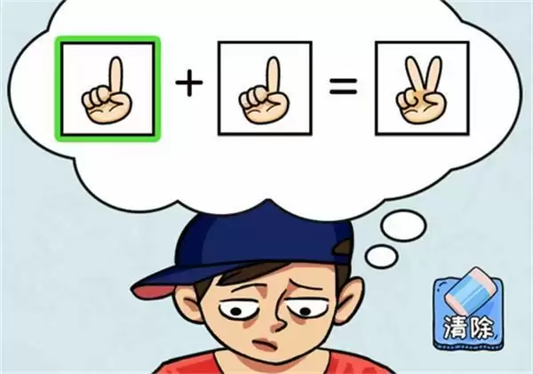 第一关:选择第一个手势,1+1=2。