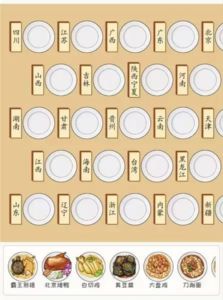 通关要求:将地方的特色菜放进对应的餐盘中。