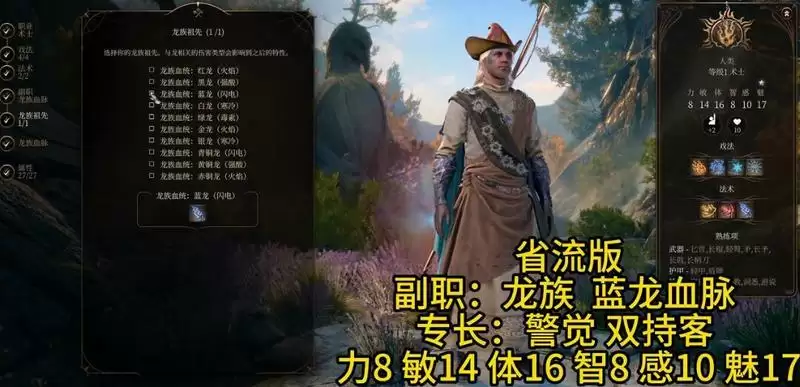 3、属性点法:力8 敏14 体16 智8 感10 魅17