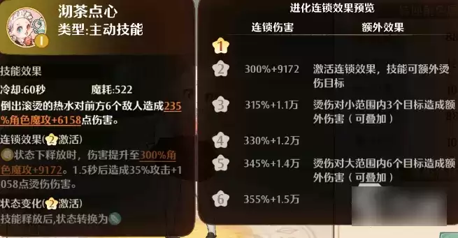 茶女仆作为连锁技角色来使用的话,可以将其的目标数量再增加三个。同时可以扩大攻击的范围,总的来说连锁技还是比较好用的,在关键的时刻可以发挥出相当程度的爆发技能来扭转局面。