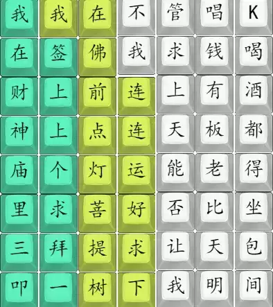 汉字找茬王求个上上签这个关卡是一个连词关卡,玩家需要找到所有的歌词并且连接成为一句歌,可能有些小伙伴在这么多字就头疼,下面和小编一起来看看详细的攻略吧!