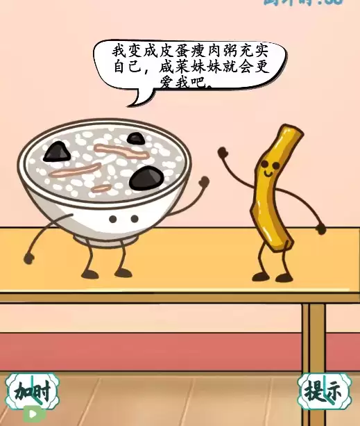 3、我们需要把肉丝和皮蛋拖给白粥。