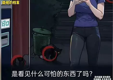 2、然后点击男人的脚、血渍抓痕、路灯、手机,上滑垃圾桶找到一团黑毛。