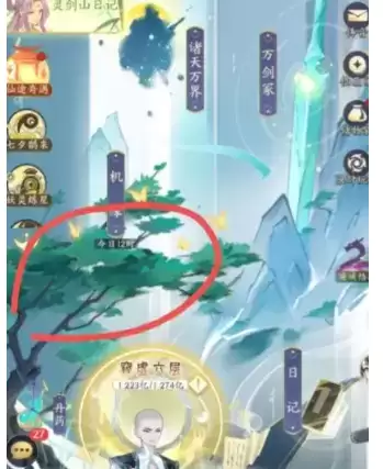 4、主页树枝 在我画圈的范围点,我也不知道点中哪里触发了,之前有树的地方我都点了也没反应,就这里突然冒出个树枝。