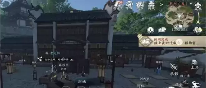 4、我们根据传闻,前往到杭州【1290,854】的位置,在此位置吧获取到的钱囊出示给次NPC