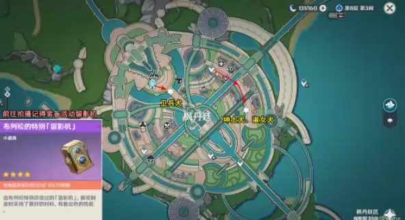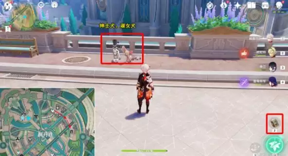 3、卫兵犬的位置,传送至枫丹廷七天神像,传送过来后,向后转,按Z拍摄卫兵犬。