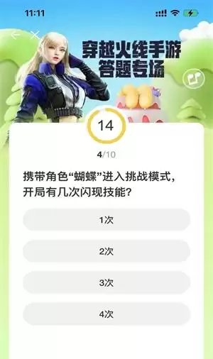 问题4、携带角色“蝴蝶”进入挑战模式开局有几次闪现技能?