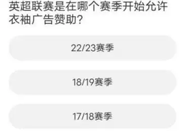 问题二:英超联赛是在哪个赛季开始允许衣袖广告赞助?
