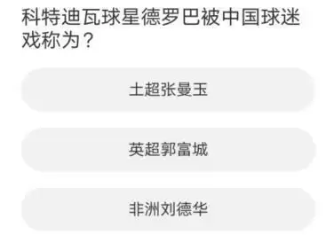 问题一:科特迪瓦球星德罗巴被中国球迷戏称为?