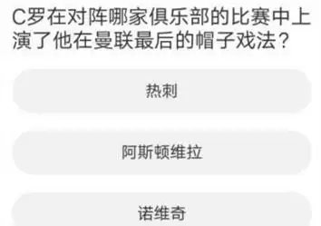 问题三:C罗在对阵哪家俱乐部的比赛中,上演了他在曼联最后的帽子戏法?