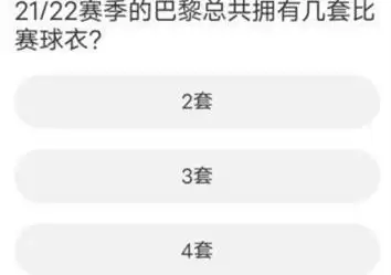 问题八:21/22赛季的巴黎总共拥有几套比赛球衣?