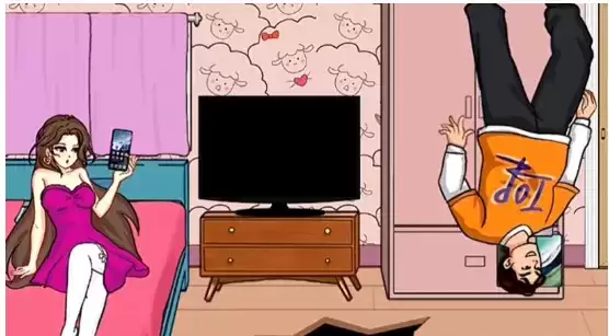 11、再次点击女人手上的手机,点击手机画面。听到敲门声后点击打开右侧的门,点击快递员手上的箱子