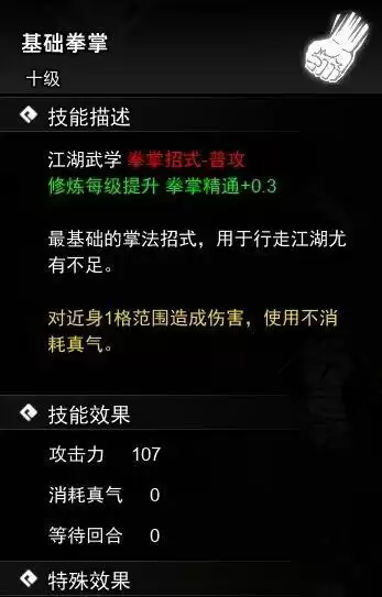 1、主角初始自带基础拳掌。