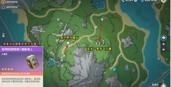 1、前往拍摄前记得装备【布列松的特别留影机】,位置如下,两个陆上建景物在苍晶区都能看到,可前往苍晶区拍摄。