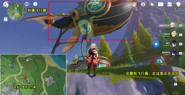 2、传送至苍晶区下图传送点,向南方向走,抬头后,按Z拍摄安东·罗杰飞行器,如果没看到飞行器,可到图片右下角装置处,点击召回飞行器。