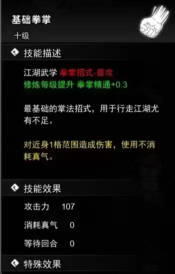 获得方法①:主角初始自带5级基础拳掌。