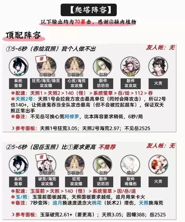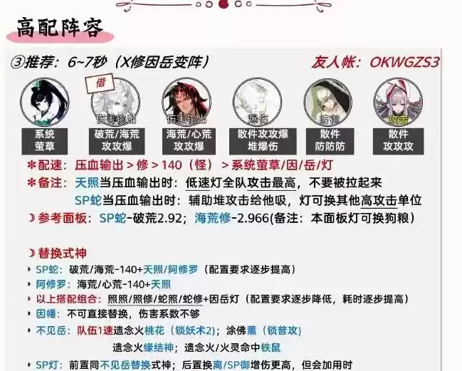 (2)备注:不见岳可换心荒阿修罗,比本阵容要求稍低,6秒/局。