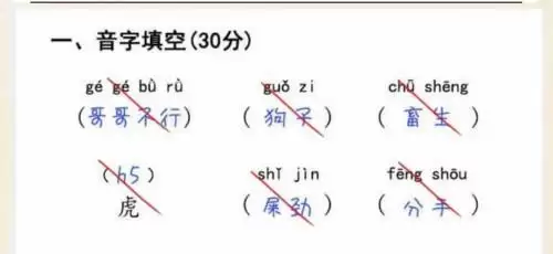 1、玩家进入关卡后首先需要批改音字填空题,将所有答案打叉即可。