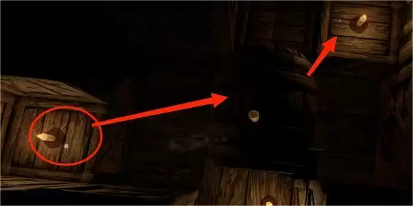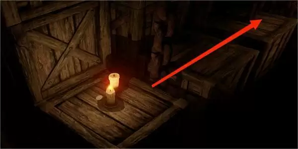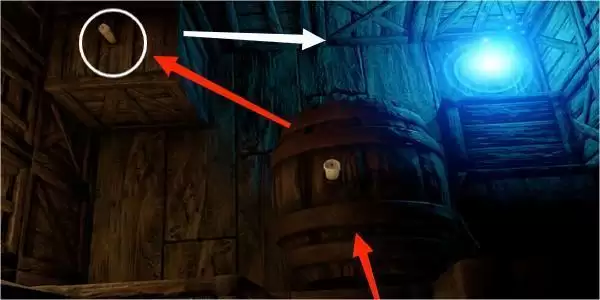 7.这里我们需要跳到下面的木箱上,并借助箱子的摇晃向左边的方向点亮蜡烛。
