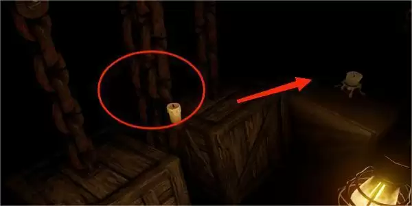 3.然后跳到木箱上,注意这里照亮一下,防止掉下去,这里借助摇晃的木箱跳到另一个蜡烛的地方并点亮。