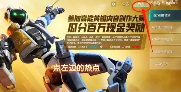 2、点击这个活动按钮进入活动中,然后可以看到左边的热点。