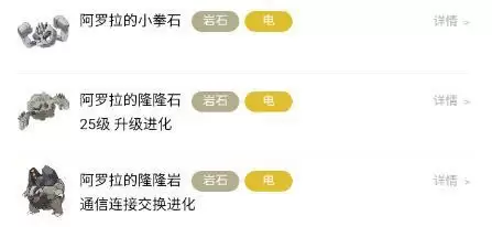 进化链:阿罗拉的小拳石→阿罗拉的隆隆石→阿罗拉的隆隆岩