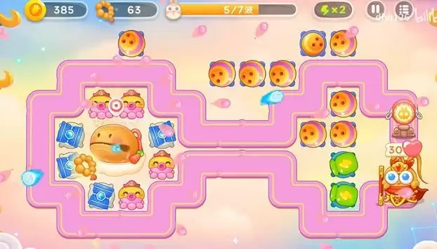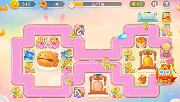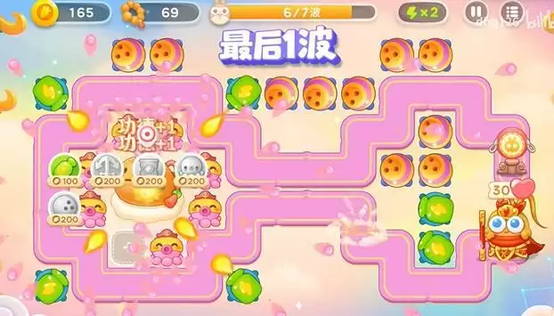 1、第一波可以在出怪口建造一个保龄球,然后木鱼旁边放上一个双向炮,前期可以快速清理道具。